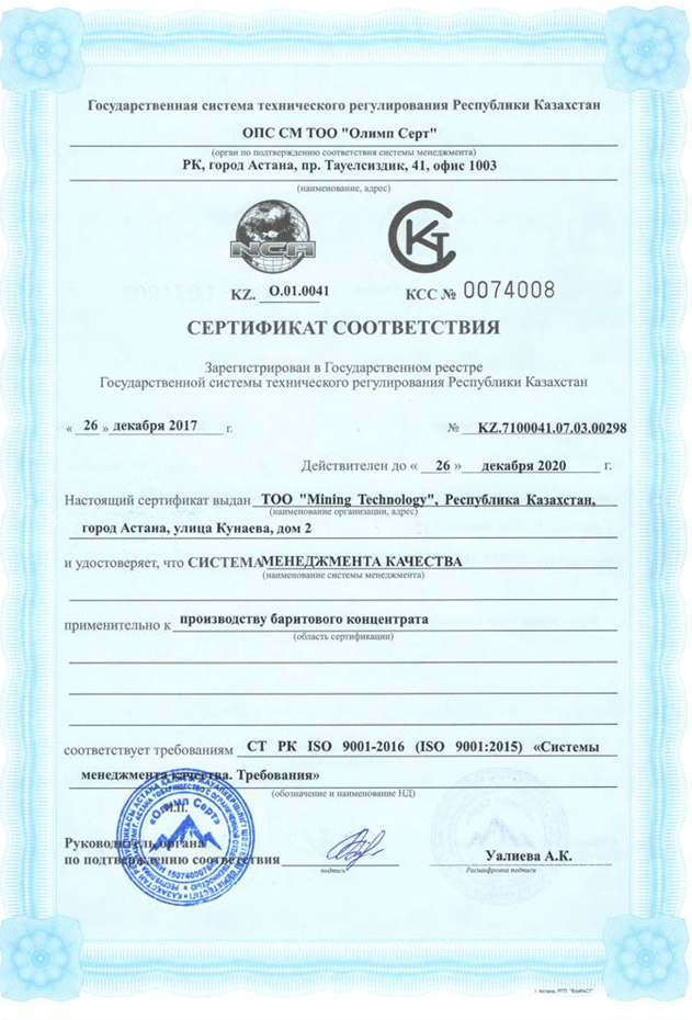ТОО «Mining Technology» - компания, специализирующаяся на производстве и поставках баритового концентрата более 15 лет. Основное производство расположено в городе Каражал, где осуществляется обогащение баритовой руды с использованием современного оборудования.